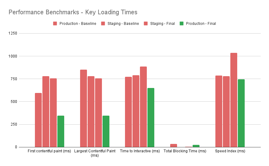 Upon completion of the project, we were able to decrease various benchmarks (related to Google CWV) by between 50-80%. Within 6 months, traffic has increased steadily by 200%.
